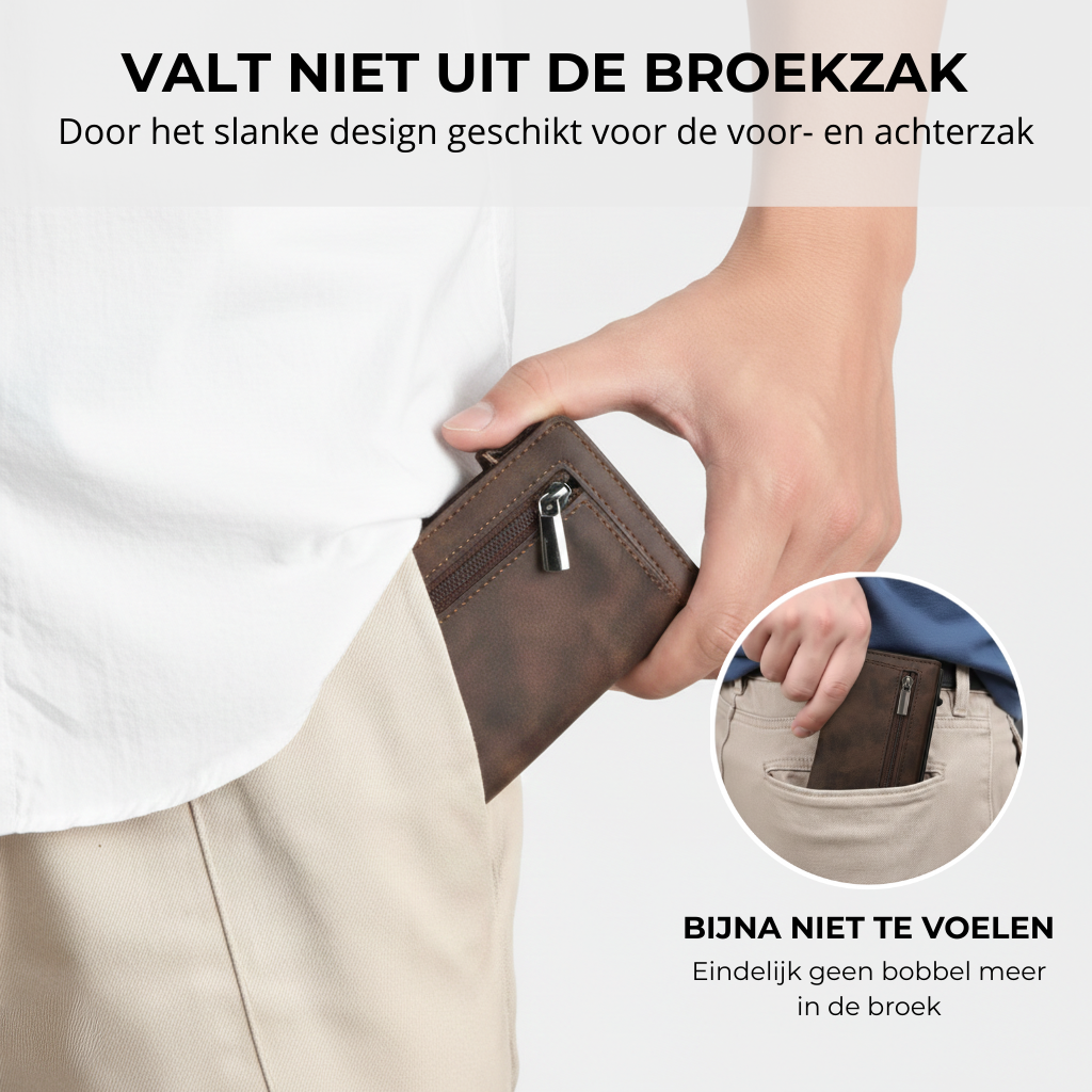 De Prime Wallet is dun en compact, zodat hij netjes in je broekzak past. Je voelt je vrijer en beweegt makkelijker, zonder dat je iets hoeft achter te laten.