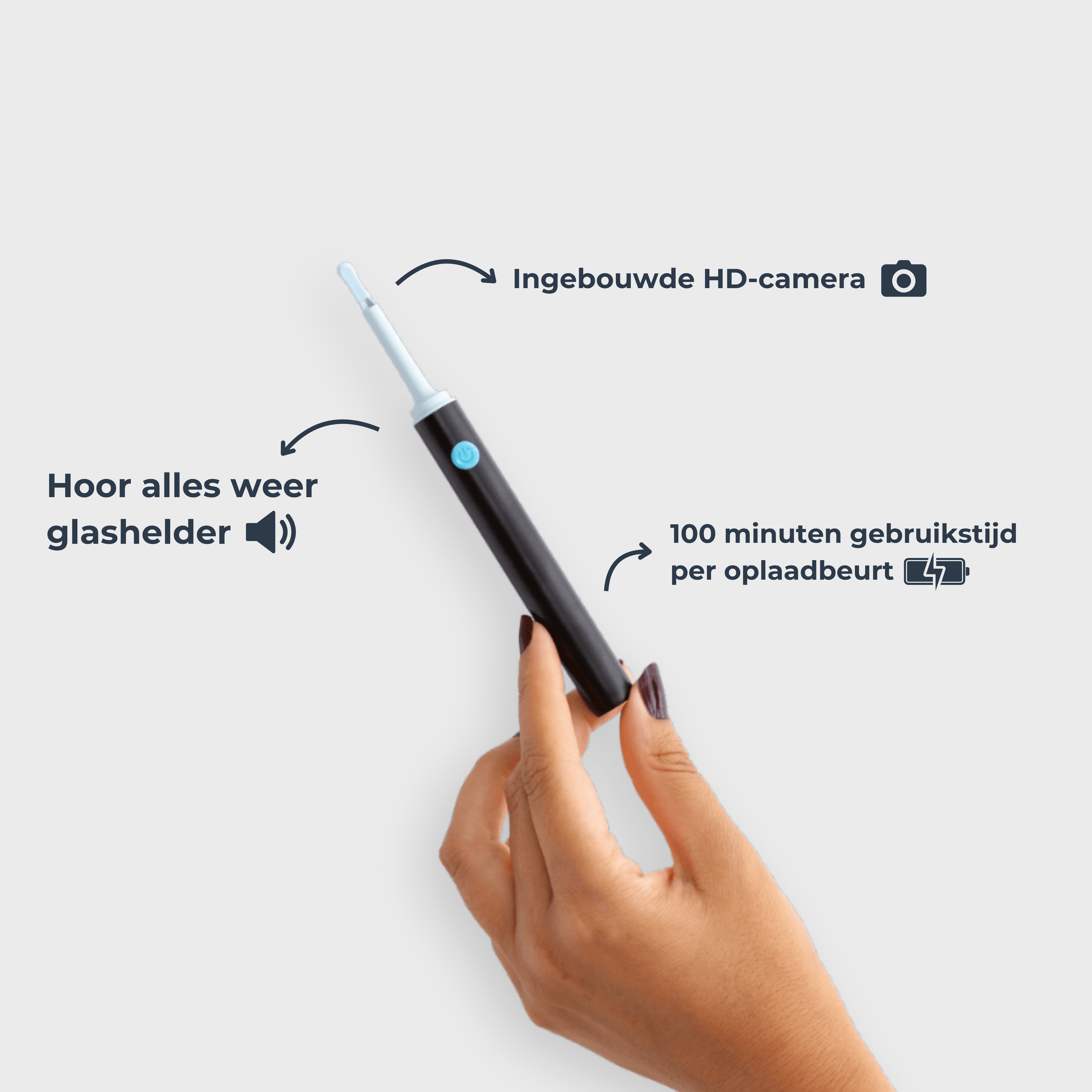 Oorsmeer, dode huid of vuil dempen je gehoor zonder dat je het merkt. Met Hearly zie én verwijder je ze veilig.